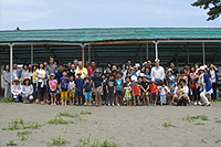 社長をはじめ、社員や社員の家族、弊社のお客様まで総勢約80名が集まり、阿南市中林町の北の脇海水浴場で行いました。