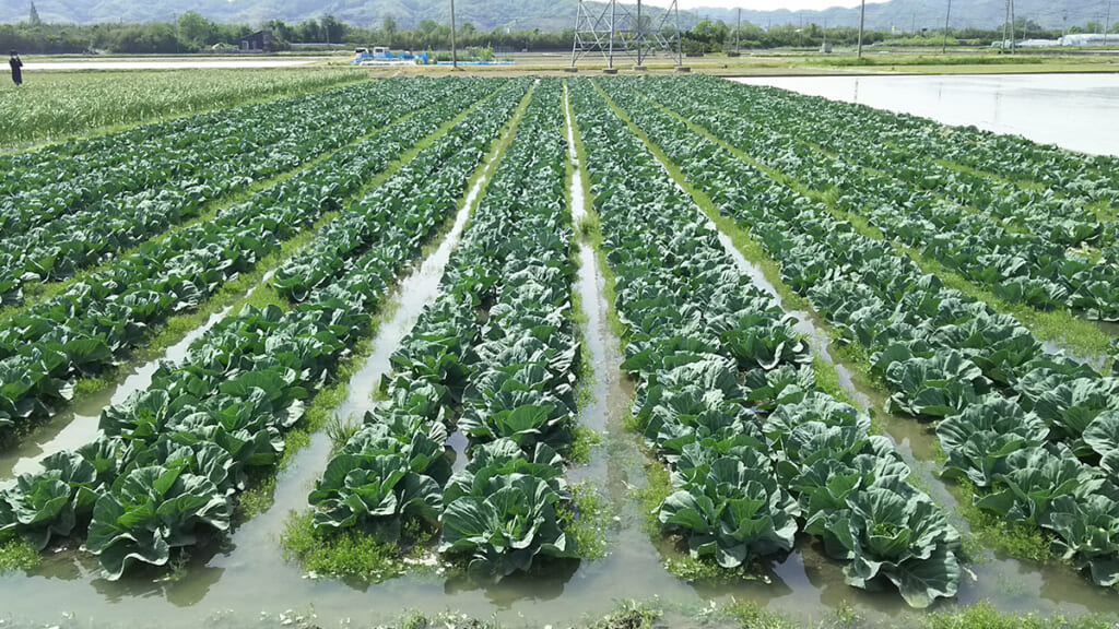 農家の方から圃場をお借りして、試験的にニンニク、キャベツの栽培を行っています。